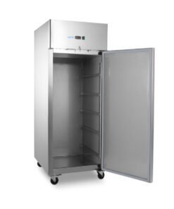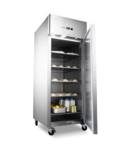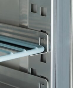 This powerful freezer with a gross freezing capacity of 800L is an asset in any bakery. On the inside, you will find room for placing 10 height-adjustable shelves of 60 x 40cm. It comes standard with 10 sets of guides that hold 60 x 40cm shelves. There is also space to double the volume to 60 x 80cm. The shelves are not included but can be ordered separately in the webshop. This professional freezer has a self-closing door with an antibacterial rubber seal. It also includes a lock and comes with two keys. To see what products have been placed in the freezer, LED lighting has been added to the interior.