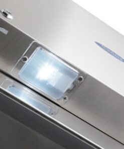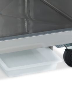 Both the inside and the outside of this professional freezer have been made from stainless steel, making it very easy to clean. Before you start, the freezer must first be defrosted. Pull the plug out of the wall socket and remove all the items. To speed up the defrosting process, you can remove the ice using a plastic ice scraper. Wipe down the inside and outside with a damp cloth and a mild detergent. Then dry everything with a soft cloth before turning the freezer back on.