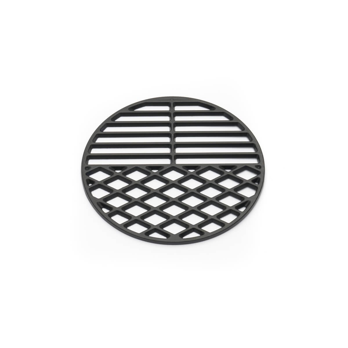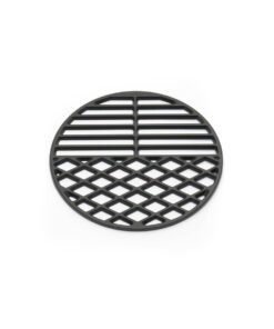 This grid is made of cast iron and can withstand higher temperatures than a normal grid. Because cast iron gives off a more even heat, it provides a perfect heating surface for searing meat. Cast iron also stays hot longer than a steel grid. And of course this grid provides the well-known grill stripes on steaks.