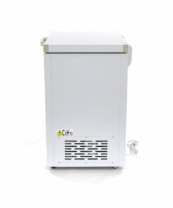 The metal body of this chest freezer has a white coating. The lid is finished with an antibacterial seal so that you can store your products hygienically. Using the easy-to-read digital thermostat, you can set temperatures anywhere within the range from -14 to -24⁰C. The freezer can be used at an ambient temperature between 3 and 38⁰C. On the inside of the freezer there is a moisture outlet and the cooling system with a fan uses the refrigerant R600a, which is CFC free.