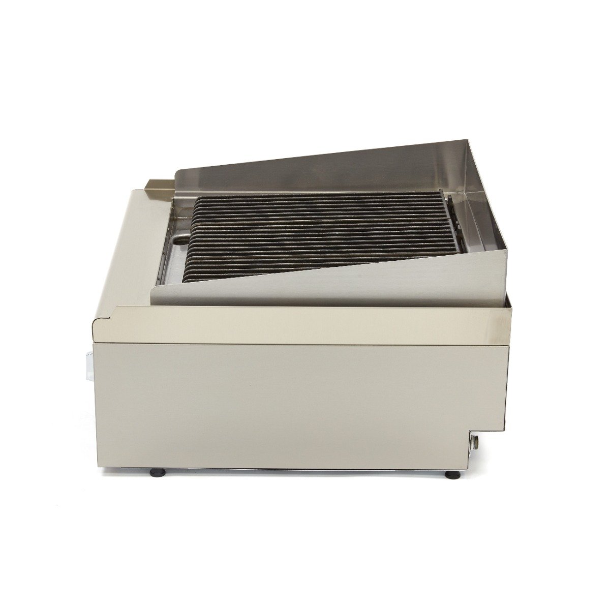 This professional chargrill adds that distinctive charcoal flavour to meat, fish and vegetables. The chargrill has a robust construction and is suitable for intensive daily use in restaurants, hotels and other catering establishments. Thanks to its compact size, you can easily move the chargrill to another place in your kitchen. The splash guard is made from one piece of stainless steel and prevents fat from splashing. The special design ensures the safe drainage of fat without flares.