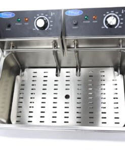 If you regularly fry large quantities of food in your catering establishment, this professional fryer with a 15 litre capacity is ideal. It consists of two separate heating elements and one large frying basket. The advantage of a deep fryer with two heating elements is that you don’t need a lot of power. So no matter what kind of kitchen you are in, the deep fryer can simply be connected to a standard electrical outlet. When lifting the frying basket, you can use the heat-resistant handles to prevent injury, and the supplied lid prevents oil from splashing during use. The rubber feet at the bottom of the appliance ensure that it remains stable and firm on most surfaces.
