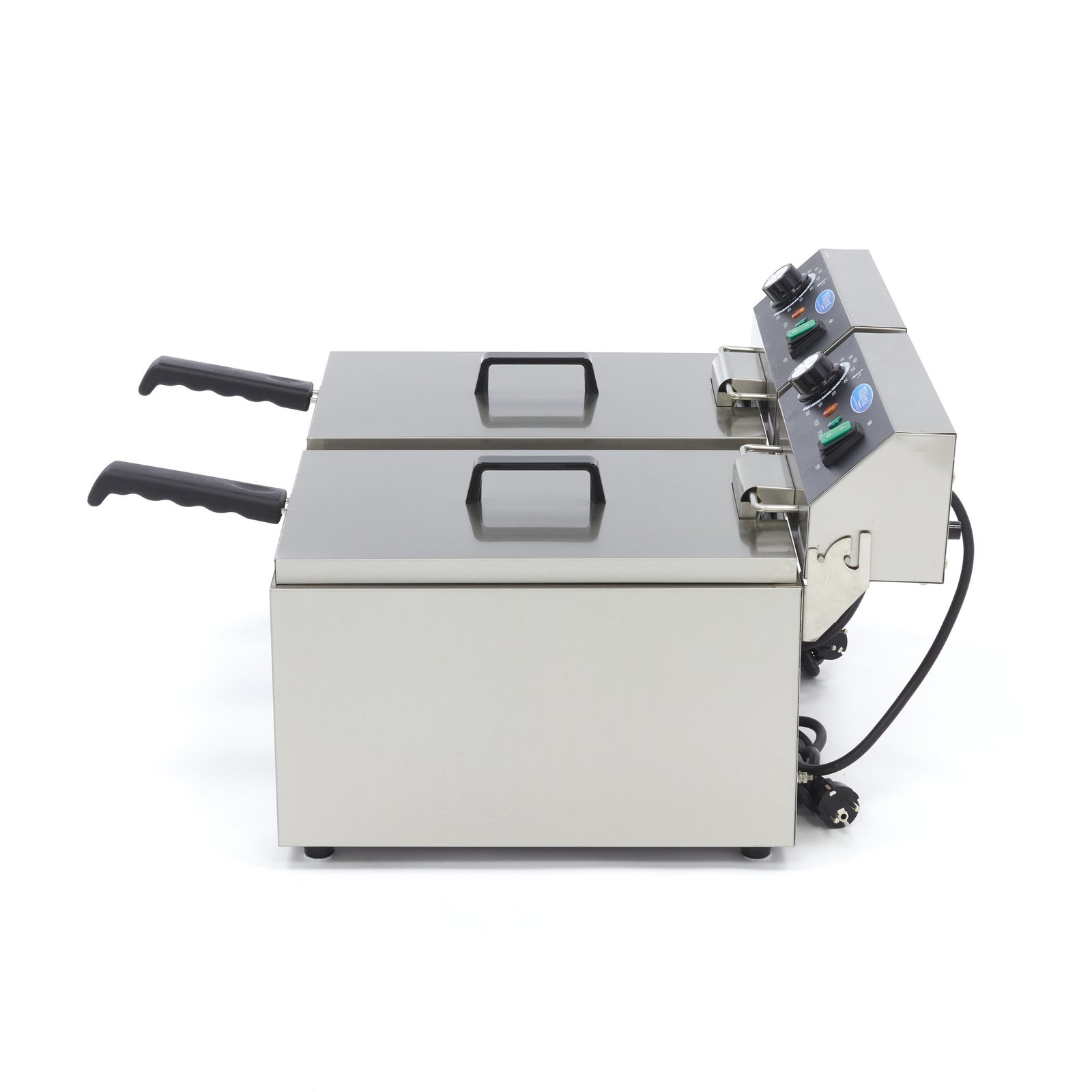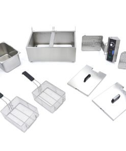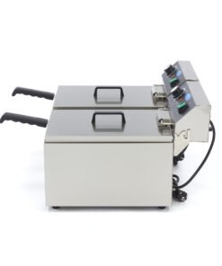 Changing frying oil can be a time-consuming chore. Thanks to this deep fryer’s cold zone, the oil stays cleaner for longer and needs to be replaced less frequently. This is because the heating element hangs slightly above the bottom, so the oil underneath becomes less hot. Crumbs that fall to the bottom burn less quickly and the oil remains fresher. This professional deep fryer is additionally equipped with removable lids and heat-resistant handles. Rubber feet also ensure that the deep fryer does not shift during use.