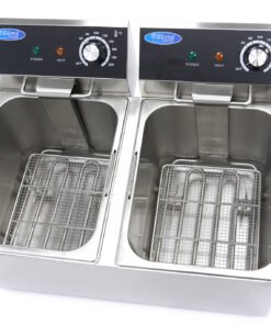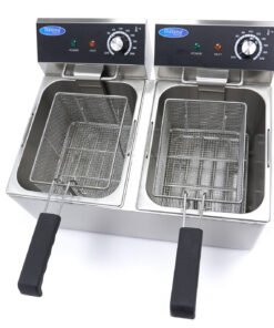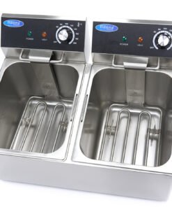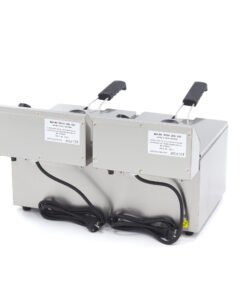 The big advantage of an electric deep fryer with a double basket of 8 litres each is that your frying capacity is immediately doubled. So you can make fries, snacks and other fried foods at the same time, without having to wait. Both heating elements have an adjustable thermostat which allows you to set a temperature between the range of 50°C and 200°C for each fryer. The orange indicator light ensures that products are placed in the hot oil at exactly the right temperature.