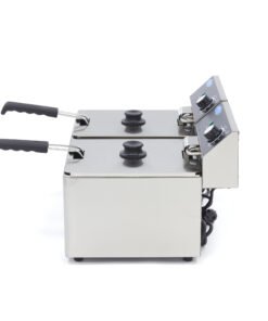 Because this professional deep fryer has a cold zone, frying oil stays fresher longer. In a cold zone, the heating element hangs slightly above the bottom of the deep fryer so all the oil underneath the heating element becomes less hot. When crumbs sink to the bottom, they burn less quickly so the oil stays usable for longer. The deep fryer also has removable lids to prevent oil splatter, as well as heat-resistant handles. The rubber feet ensure a stable placement on any counter or table.