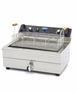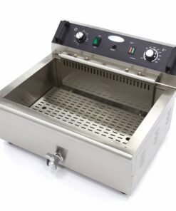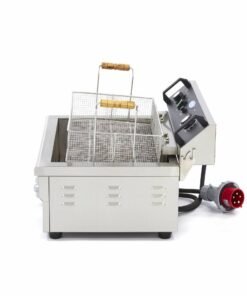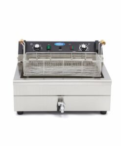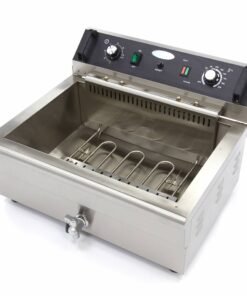 Do you prepare large quantities of food in your professional kitchen? This extra-large deep fryer with a 20 litre capacity is a welcome addition to any bakery, fishmonger, chip shop or other catering facilities. Customers no longer have to wait while you expertly fry large portions of fish, fries and other fried snacks. This professional deep fryer has two heating elements that can be set with the precision thermostat. You can choose a desired temperature between 50°C and 200°C. This deep fryer also features a handy indicator light to show when the oil is ready. It works on 400V power.