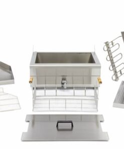 All parts of this extra-large deep fryer are removable. To remove oil and fat residues, you can soak them in warm, soapy water. Then gently scrub them clean with a brush. The stainless steel exterior and parts make this cleaning job a lot easier. Dry the fryer after with a soft cloth.