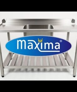This professional dishwasher table with sink is made from high-quality stainless steel and has a handy backsplash on the side and back. The underside of the sink includes a shelf for storing items, such as the dishwasher baskets and detergent. This dishwasher table has a sink in the middle.