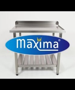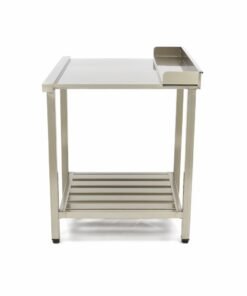 This professional dishwasher table with sink is made from high quality stainless steel and has a handy backsplash on the side and back. The underside of the sink includes a shelf for storing items, such as the dishwasher baskets and detergent. This dishwasher table has a sink in the middle.