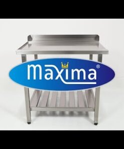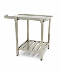 This professional dishwasher table with sink is made from high quality stainless steel and has a handy backsplash on the side and back. The underside of the sink includes a shelf for storing items, such as the dishwasher baskets and detergent. This dishwasher table has a sink in the middle.