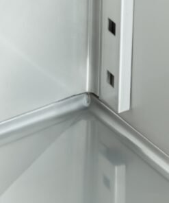 The freezer has two robust doors with a magnetic door seal. This ensures that the doors close by themselves. This prevents the doors from being left open and defrosting your products. The doors can be individually locked with a key. Above the doors, you can accurately read the temperature and adjust it using the arrow keys. You can set the freezer temperature from -10 to -20°C. When you open or close the door, the light in the doorway goes on or off automatically. Even though this is a large freezer, it’s easy to move around with the four wheels under it. The front wheels are fitted with a brake, which keeps the freezer in place.