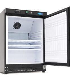 When working with fresh ingredients, it’s important to have a fridge to keep everything chilled for as long as possible. This professional black fridge has a gross capacity of 200L and is equipped with three adjustable shelves. This allows you to choose the best layout based on your needs. It also offers the flexibility to expand the number of shelves for additional compartments. The door includes a lock for added convenience.