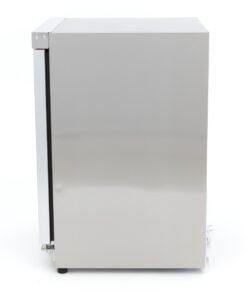 This fridge features a user-friendly electronic temperature control and digital display, making it easy to read and set the temperature. Products can be cooled within a wide temperature range. This fridge uses static cooling with a fan to keep the contents evenly cooled. This fridge also prevents large temperature differences. It quickly reaches the desired temperature and minimises ice formation with a cooling cycle every six hours. This fridge uses R600a refrigerant, which is CFC-free. It also comes with two adjustable front feet and two back wheels, making it easy to move if needed.