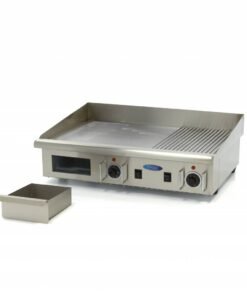 Flavours and vitamins are preserved longer when you cook on an electric griddle. For the tastiest meat, fish or vegetable dishes, use this professional grill with both a smooth and a grooved 6mm thick grill plate. Not only does an electric griddle heat up quickly, it also cools down quickly for easy cleaning after use. With a grilling surface of 73cm, you can cook large portions of food evenly in one go. This electric grill is ideal for intensive daily use in any catering kitchen.