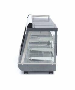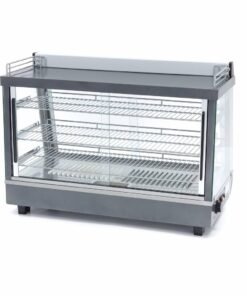 On top of the display case is space for storing kitchen utensils. Thanks to the powerful element, heat is distributed evenly throughout the entire display. This heated food display comes with three adjustable chrome-plated shelves so you can customise your layout. The temperature can easily be adjusted using the analogue dial to temperatures within a range from 30 to 90ºC. The built-in humidity reservoir ensures that products are kept moist and tasty while inside the display case. The temperature can be read on the front of the display case. This heated food display stands firmly on fixed legs and can easily be placed on a table or countertop.