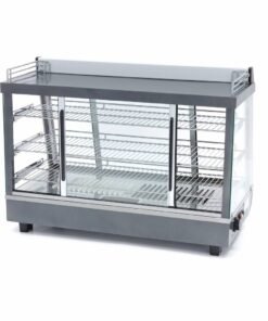 Customers like to enjoy warm meals without having to wait long for their orders. This 136L heated food display has a width of 91,5cm making it ideal for keeping baked goods, appetisers, grilled dishes and other snacks warm and ready to serve. The front is fitted with glass sliding doors for easy self-serve access, and inside there is built-in LED lighting so that customers can easily see what products are available. At the back of the display are sliding doors to make it easy to refill. There is also a card holder that can be used to advertise the products in the display case. As well as keeping food warm, this premium appliance lets you attractively showcase your menu items.