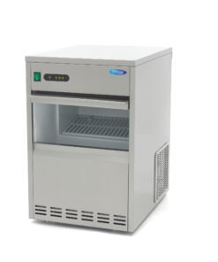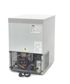 This robust, water-cooled ice machine produces up to 45kg of bullet cubes every 24 hours. It’s perfect for keeping drinks cool, food fresh and for presenting products. You can also store up to 7kg of crushed ice in the machine itself.