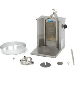 With this compact model shawarma grill, you can quickly serve the tastiest shawarma sandwiches, kebabs and other grill dishes. This kebab grill is not only suitable for use in shawarma shops and grillrooms but also for grilling meat in food trucks and other catering establishments. This professional doner kebab grill has one gas burner with stainless steel protection mesh. For perfect preparation, the grill skewer is adjustable and can be turned left and right.