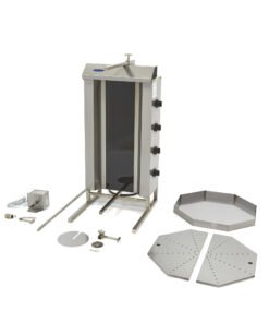 The removable stainless steel drip tray collects the fat from the meat to facilitate easy cleaning. It also comes with a filter. To quickly serve delicious grilled dishes in your catering establishment, you can order a special electric kebab knife, which helps you slice meat from the spit easily. This grill is not supplied with stainless steel reflection screens. These can be ordered separately.