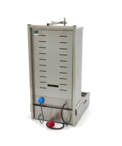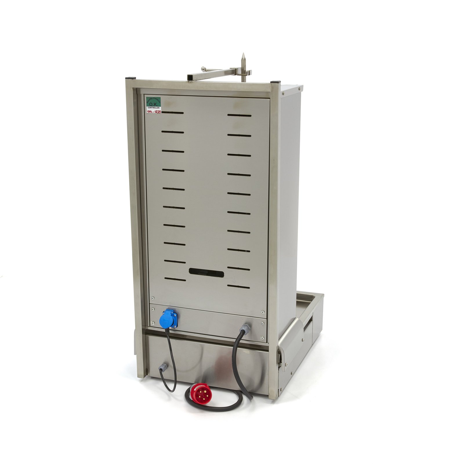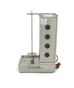 Is a delicious doner kebab, shawarma roll or other grilled dish on the menu? Then this professional shawarma grill will be an asset to your catering kitchen. You might think that a kebab grill is only used in shawarma shops or grill restaurants, but you can use this grill to cook various types of meat. This makes it suitable for various kitchens and food trucks. The grill has four electric burners with stainless steel protection mesh and the motor is located at the bottom. The temperature per burner is very easy to set, which is handy for when you want to prepare light or dark grilled meat. The skewer rotates once per minute. In addition, the supplied meat plate has a diameter of 19cm.
