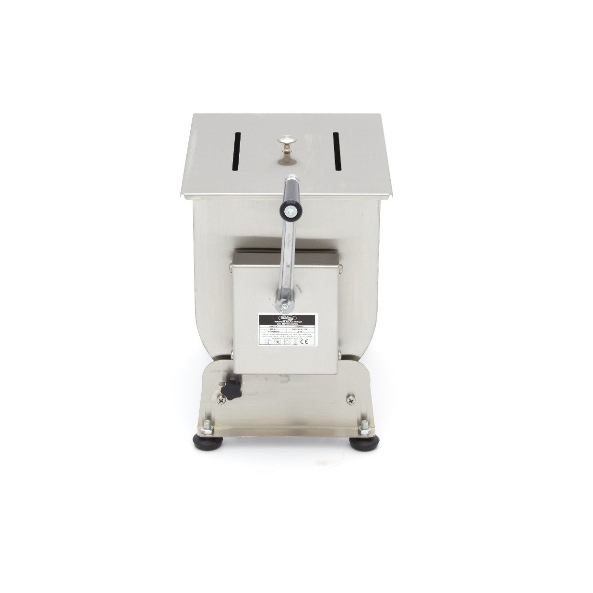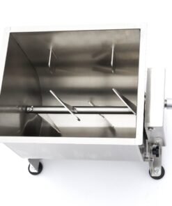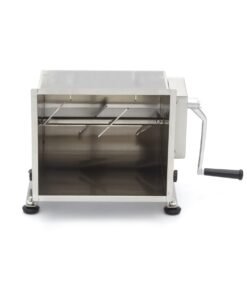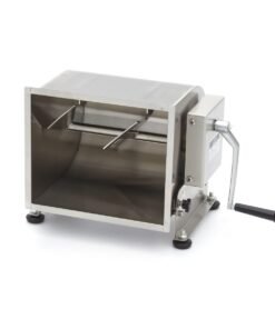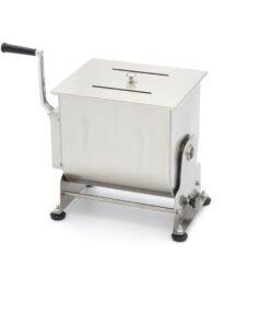 Mixing meat in this stainless steel meat mixer is very easy: simply open the lid and fill the reservoir with the desired amount of meat or fish. The reservoir has a capacity of 20 litres and is suitable for processing 13 to 16kg of meat or fish. After you have added your meat, you can add spices such as herbs, nuts or vegetables. To mix everything well, turn the handle until you have reached the right texture for your meat or filling. The meat mixer can turn in two directions. The tilting reservoir is very handy when you want to take the contents out and also offers a great advantage when cleaning. For a good grip on almost any surface, the meat mixer is equipped with four rubber feet.
