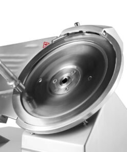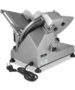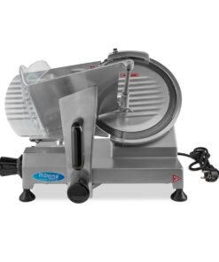 Cutting straight and thin slices is difficult if you have to do it by hand. Using this professional electric meat slicer, you can cut not only perfectly uniform slices of meat but also other items. The blade that comes standard with the machine is for slicing meat only. However, if you want to slice other items, we offer additional accessories like a Teflon-coated blade for slicing cheese and a serrated blade for cutting bread. Cutting with this versatile kitchen appliance is a smooth and quiet job. The hardened stainless steel blade has a diameter of 25cm and you can adjust the cutting thickness between 1 and 12mm per slice. This ensures that slices of sausage, ham, salami or other types of meat are always cut to the same thickness.