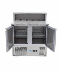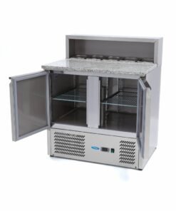 The professional pizza prep fridge has been made from sturdy stainless steel and granite, which makes it very easy to clean. In addition, stainless steel has the advantage of being very durable and scratch-resistant, which helps to minimise the spread of bacteria. The prep fridge can be cleaned using a damp cloth, warm water, and mild detergent. After cleaning, wipe everything dry with a soft, dry cloth.