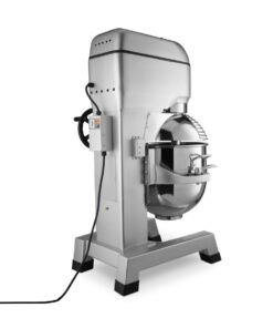 Kneading and mixing in large restaurant kitchens, canteens, bakeries and pizzerias is difficult without a high-quality planetary mixer. This device easily processes 30kg of pizza dough and 24kg of bread dough. The minimum amount of bread dough that can be kneaded is 7kg. Thanks to the powerful motor and belts, the dough hook moves through any batter or dough effortlessly. When the bowl is filled with dough, it can easily be lowered after mixing using the lever on the side.