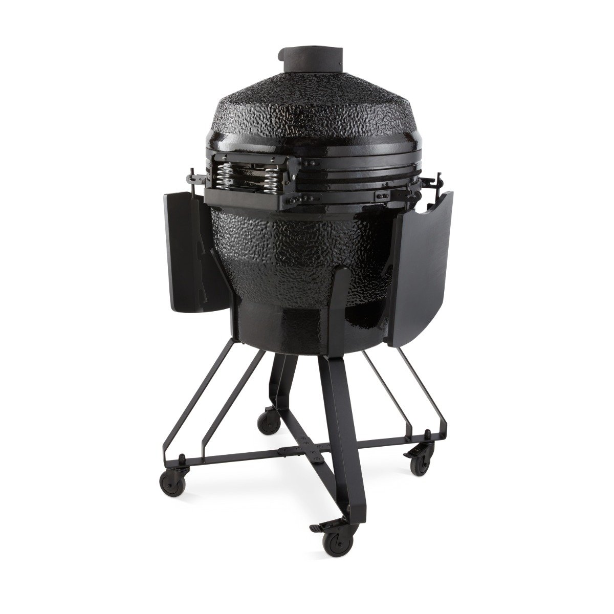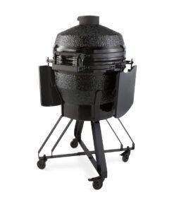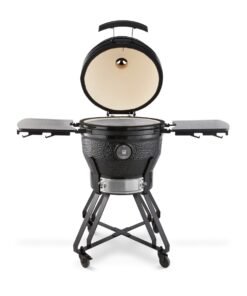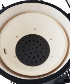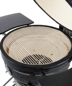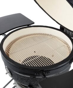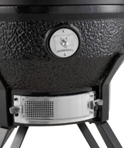 The adjustable air supply at the bottom and the air outlet in the lid ensure optimal air circulation. You can use it to adjust the temperature of your dishes. The adjustable grill plates are also beneficial as they allow you to place your dishes at the ideal height above the fire. The wall and fire bowl are ceramic and ensure that the Kamado won’t be affected by high temperatures or temperature differences.