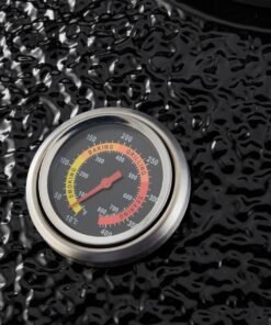 Besides the robust ceramic, the rest of the materials also guarantee that you have a solid cooking device at your disposal. The steel parts are coated and the cooking grid is made from stainless steel. It also contains a layer of porcelain enamel, which makes it resistant to rust and peeling. This allows you to safely leave your Kamado barbecue outside. The handle is made from bamboo to ensure that it does not get hot during the cooking process.