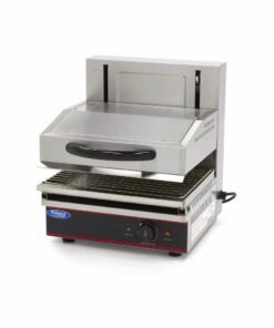 You can grill, warm, glaze, gratinate, and defrost in this deluxe salamander grill. It’s a multifunctional appliance that can cook meat, fish or vegetables. The salamander is height-adjustable and has a robust American design.