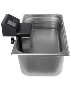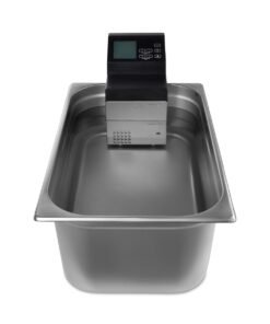 With a considerable capacity of 30 liters, this appliance is suitable for sous vide cooking various dishes and food items. The taste, texture and nutrients are all preserved when you choose sous vide cooking. This way of cooking is also very quiet. There are more advantages to sous vide cooking: it’s healthy because less fat and salt are used in the preparation and products do not burn or separate as the water does not get hotter than 99ºC. By cooking vacuum-packed dishes at a constant temperature, they also do not dry out.