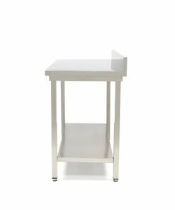 Equipment made from stainless steel is very easy to clean. This is also the case with this table with a backsplash. As the table has no sharp edges, dirt cannot accumulate. With a damp cloth, warm water and some mild detergent, you can easily wipe clean all the smooth surfaces of this table. Make sure that you dry the table with a soft cloth after cleaning to prevent streaks on the stainless steel parts.