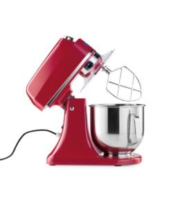 Weighing in at 17kg, this mixer is a stable and welcome addition to any kitchen. Thanks to the powerful motor and metal gears, it delivers a top performance. As a bonus, it is also extremely quiet, so it won’t disturb anyone no matter how or where you use it. It can knead up to 2kg of pizza dough or 1,5 kg of bread dough with minimal effort. The minimum amount of bread dough that can be processed is 0,2kg. The strong aluminum housing has a scratch-resistant coating to prevent damage to the beautiful design.