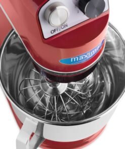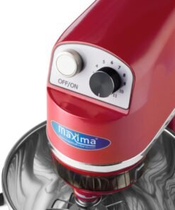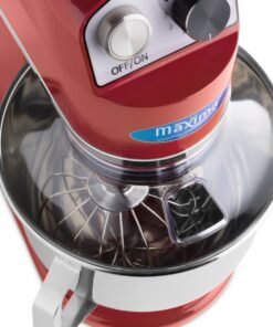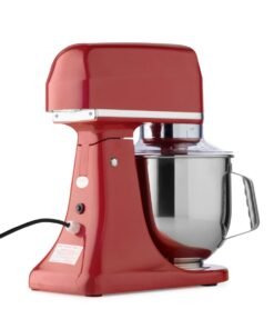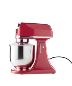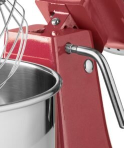 This professional planetary mixer is very simple and convenient to use. A lever opens the mixer making it easy to remove the mixing bowl or change accessories. The head of the device is equipped with a safety switch so that the machine automatically stops when the head is lifted. Switch it on and off with the separate start and stop buttons. To prevent the moving parts from being touched during operation, the product is fitted with a plastic protective cover. You can also add ingredients while kneading or mixing using the opening above the bowl. All individual stainless steel parts are dishwasher-friendly.