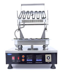 With this tartlet machine, you can quickly produce several tartlet forms at once. When ordering the tartlet machine, you can also purchase the different moulds available separately. The top and bottom heating can be set individually with the variable thermostat with temperatures between 50 and 300⁰C. The indicator light shows when the device has reached the right temperature and you can start baking. This kitchen appliance is easy to use and has a digital display. In addition, you can set a timer between 0 and 10 minutes.