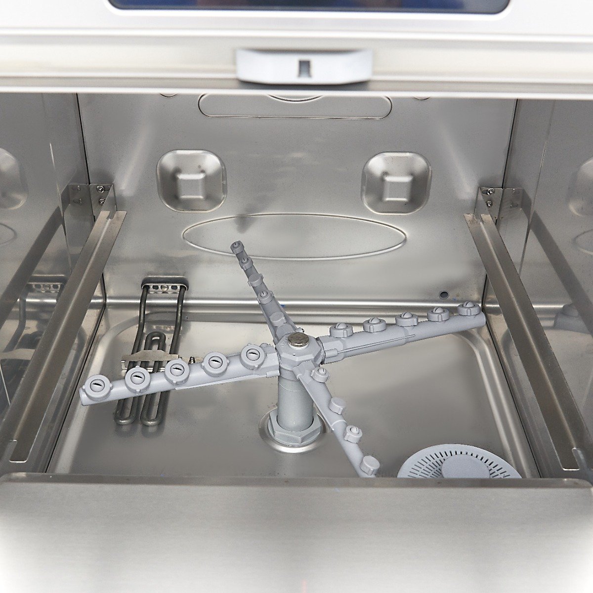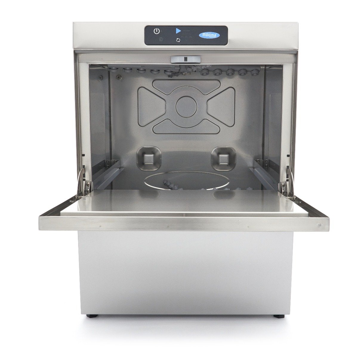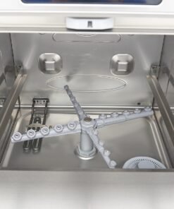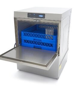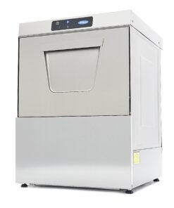 This dishwasher is highly economical, consuming only 2,8L of water per cycle. It offers safety features, such as thermal protection and IPX5 protection for the control panel. It’s also easy to operate the machine with a single button for water filling and heating in the boiler tank. The digital pressure switch for the washing tank allows easy adjustment of the water level, while the NTC sensor controls the thermostat. The dishes are washed at 55-60°C and rinsed at 80-85°C, resulting in faster drying. You can choose to preheat the water or start with cold washing. Four indicator lights show the status of filling, heating, washing and programme durations. The dishwasher makes a sound once the cycle is finished. It comes with a 50 x 50cm glass basket, a 50 x 50cm plate basket, a cutlery basket and a supply and drain hose for connecting to the water supply. The dishwasher includes rinse aid, soap and drain pumps. Four adjustable feet allow for easy height customisation.