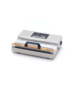 Using the vacuum foil that you can easily order, you can pack your food quickly and tightly. In addition, the process is fully automatic. The vacuum time, vacuum pressure, sealing time and sealing temperature are all individually adjustable. The vacuum sealer also has a separate pulse function for vacuum packaging soft products. Within two seconds the products are packed airtightly. You can also seal on your own without pulsing. Please note that this kitchen appliance is only suitable for vacuum bags with relief. Food can be packed up to 0,96 bar and the vacuum sealer is fitted with a double pump. The specific hose for this machine is sold separately under Accessories.