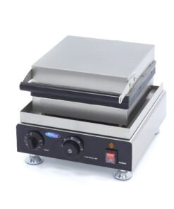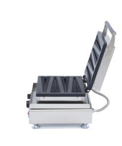 Lollipop waffles are very popular, especially with children. With this waffle maker, you can easily create four waffles on a stick at the same time. These waffles come in the shape of a pine tree and are delicious with icing sugar or drizzled with chocolate. Thanks to the stick in the waffle, the lollipop waffles are easy to eat. The aluminium trays have a non-stick coating, which ensures that batter and waffles do not stick to the plates. Thanks to the high-quality parts of this waffle iron, it will last a long time and it is well suited for professional use in old-fashioned cake shops, food trucks, cafes and other catering businesses.
