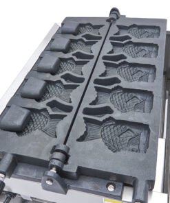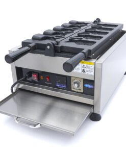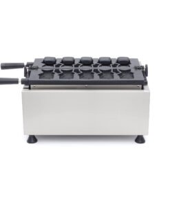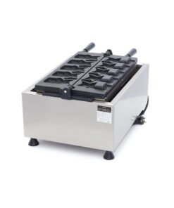 This waffle maker is easy to use and well suited to use in market stalls, fairs or even a cafe. It is of a high quality and, thanks to its compact size, simple to move and store. The aluminium baking tray has a non-stick coating which ensures good conduction of the heat and that the waffles do not stick to the machine. The digital thermostat can be set to temperatures between 50 and 300°C. This waffle maker is equipped with a timer with an alarm that you can turn on or off. This is helpful so that you do not overcook the Taiyaki waffles and burn them. The device also has an indicator light that tells you when the baking trays are at the right temperature and you can start making the waffles.