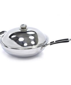 To close the induction wok pan, use this lid made from stainless steel. The lid fits the induction wok pan perfectly and ensures that the heat stays in the pan. The lid has a handle, is easy to clean and is also dishwasher safe.